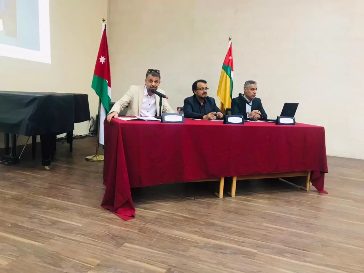 تحدث في الجلسة الأولى للمؤتمر الذي يقام على يومين الأول في كلية الفنون والتصميم، وادارها رئيس الرابطة د.إبراهيم الخطيب، د. معتصم كرابلية، ود.حسني ابو كريم، كما تحدث في الجلسة الثانية د. عبدالله التميمي، و د. محمد نصار.