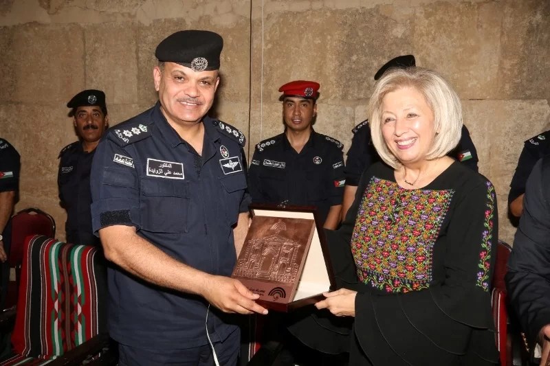 كرمت وزيرة الثقافة هيفاء النجار اليوم بحضور المدير التنفيذي لمهرجان جرش مازن قعوار ومدير أمن أقليم الشمال سالم الشماسين، كرمت فرسان وفارسات مجموعة قيادة المراسم / الأمن العام بدرع مهرجان جرش للثقافة والفنون 2022 في دورته36 .